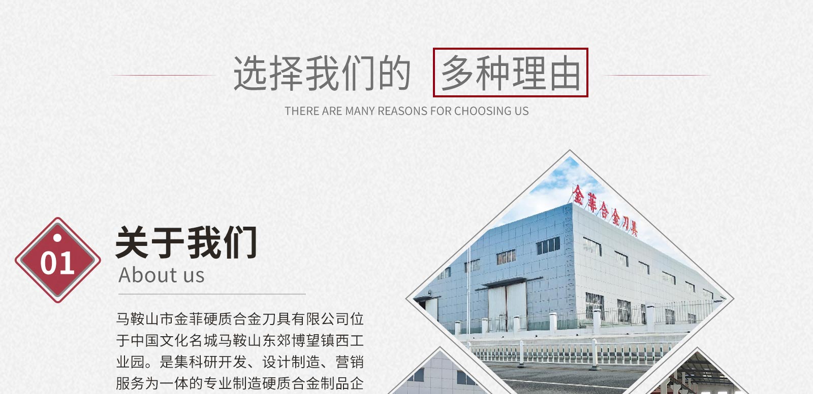 馬鞍山市金菲硬質(zhì)合金刀具有限公司成立于2006年,占地面積12000平米,廠(chǎng)房及辦公面積6000平米。公司擁有先進(jìn)加工設(shè)備70臺(tái)。金菲公司選用國(guó)內(nèi)"鉆石"牌合金原料,為各大變壓器廠(chǎng)、鐵芯廠(chǎng)及電工設(shè)備廠(chǎng)家提供合格合金刀具。自我研發(fā)超高精度合金刀片,已經(jīng)為國(guó)內(nèi)很多客戶(hù)替代進(jìn)口刀片,降低成本。公司深耕高精度刀具多年,年生產(chǎn)銷(xiāo)量國(guó)內(nèi)排名靠前!歡迎新老客戶(hù)前來(lái)考察或來(lái)電洽談。
