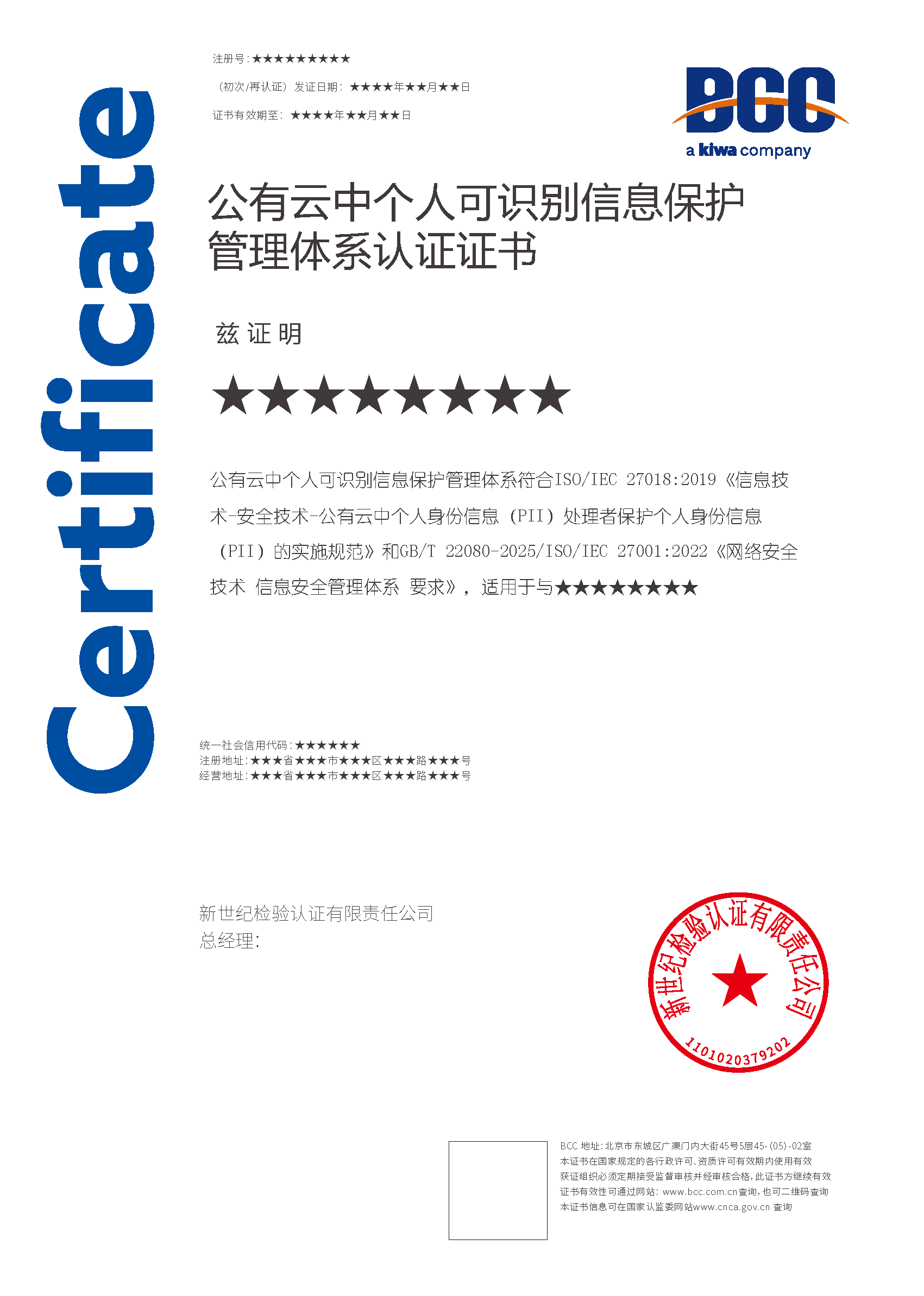 本頁涉及的認證服務中均有對應的《認證實施規(guī)則》,BCC擁有其最終解釋權。任何組織及個人未經(jīng)BCC許可,不得以任何形式全部或部分使用(法律要求除外)認證相關信息。如需獲取相關實施規(guī)則請用以下方式聯(lián)系獲取:電話:010-58579316 郵箱:fwjs@kiwa.cn