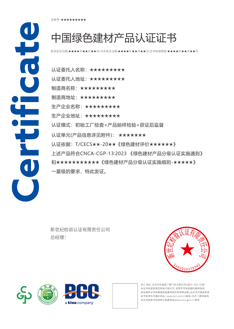 綠色建材產(chǎn)品分級認證按照中國工程建設(shè)標準化協(xié)會發(fā)布的《綠色建材評價標準的要求》,將認證結(jié)果由低至高分為一星級、二星級和三星級。