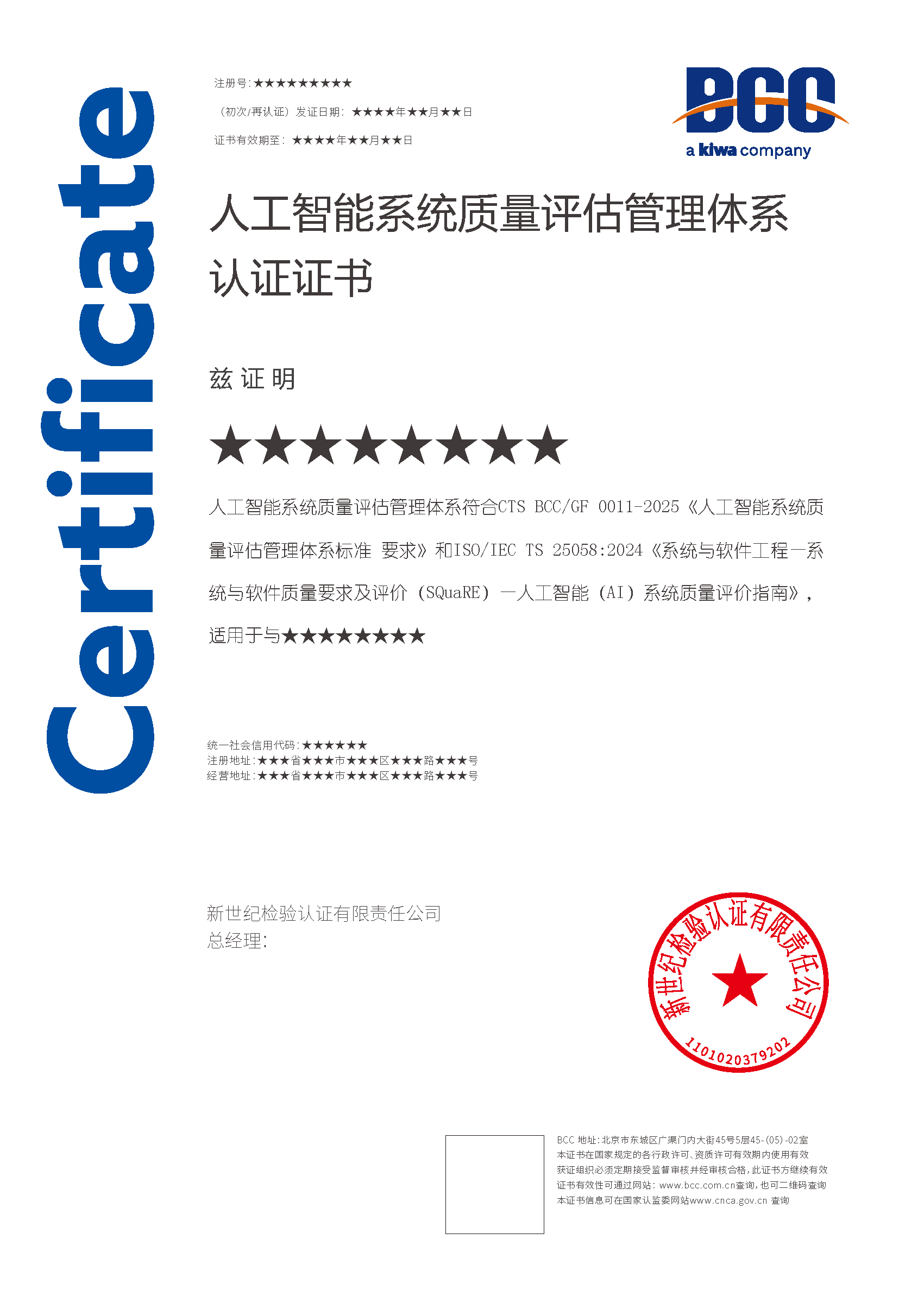 本頁涉及的認證服務(wù)中均有對應(yīng)的《認證實施規(guī)則》,BCC擁有其最終解釋權(quán)。任何組織及個人未經(jīng)BCC許可,不得以任何形式全部或部分使用(法律要求除外)認證相關(guān)信息。如需獲取相關(guān)實施規(guī)則請用以下方式聯(lián)系獲?。弘娫挘?10-58579316 郵箱:fwjs@kiwa.cn