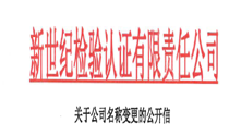 根據(jù)公司戰(zhàn)略發(fā)展的需要,經(jīng)市場監(jiān)督管理局核準(zhǔn),自2019年10月22日起,公司名稱由“新世紀(jì)檢驗認(rèn)證股份有限公司”正式變更為“新世紀(jì)檢驗認(rèn)證有限責(zé)任公司”。閱讀更多 -