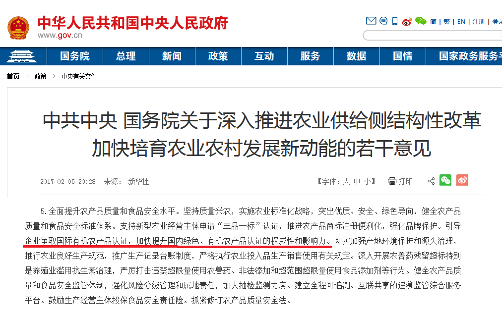 意見指出,“引導企業(yè)爭取國際有機農(nóng)產(chǎn)品認證,加快提升國內(nèi)綠色、有機農(nóng)產(chǎn)品認證的權(quán)威性和影響力。”