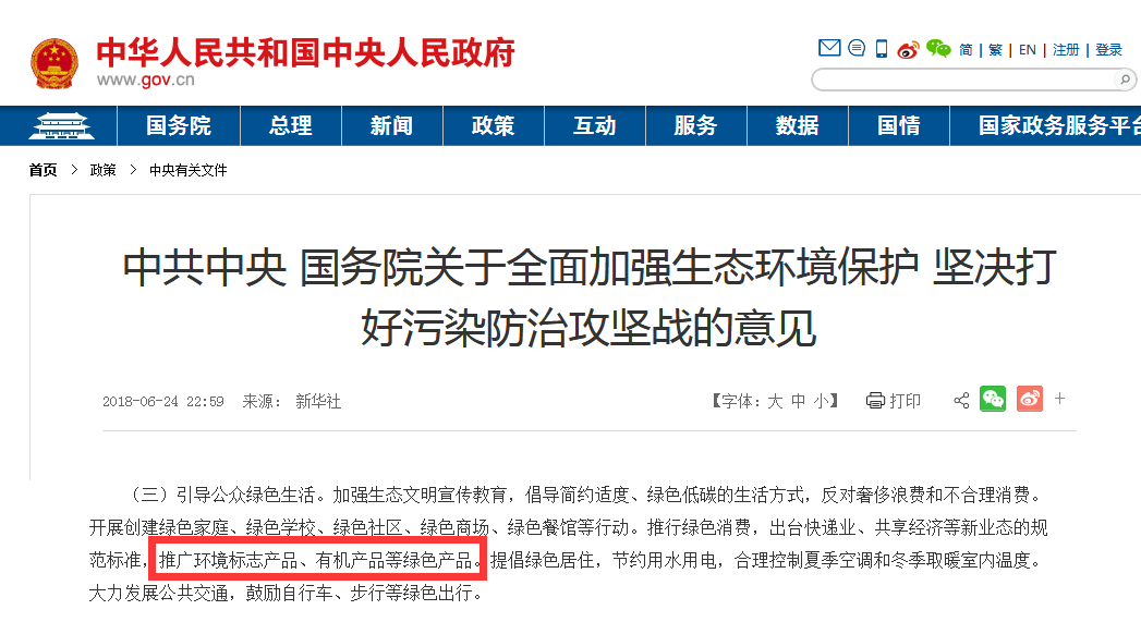 意見指出:推廣環(huán)境標志產(chǎn)品、有機產(chǎn)品等綠色產(chǎn)品。
