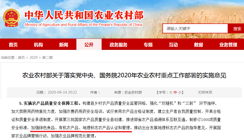 通知對于“加強綠色食品、有機農(nóng)產(chǎn)品、地理標志農(nóng)產(chǎn)品認證和管理,實施地理標志農(nóng)產(chǎn)品保護工程,培育打造200個地理標志農(nóng)產(chǎn)品。”的描述,要全面提高農(nóng)產(chǎn)品質(zhì)量安全水平。