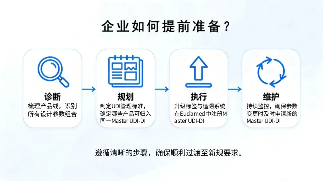 3. 提前合規(guī)窗口:法規(guī)允許制造商在 2028 年 11 月 1 日前,提前按照新規(guī)則分配 Master UDI-DI,為企業(yè)預(yù)留了充足的系統(tǒng)調(diào)整時間。